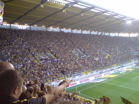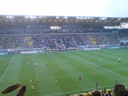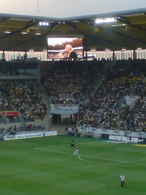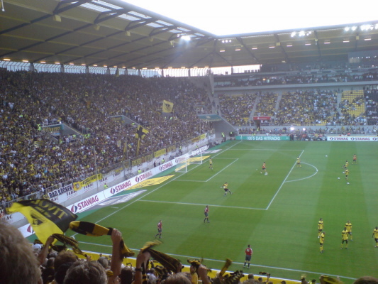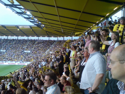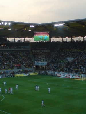 Am 17.08.2009 war es dann so weit: Was als große Feier geplant war, wurde leider zu einer Art Desaster - vielleicht sogar zu einer Art Fluch? Das Spiel gegen Sankt Pauli endete mit einem satten 0:5 und Marius Ebbers trug das Seinige dazu bei. Am schlimmsten aber war, dass dann auch noch ein Sankt-Pauli-Fan aus dem Gästebereich fiel und sich schwerste Verletzungen zuzog. Das Bild des wie eine Puppe herunterfallenden Menschen werde ich nicht mehr vergessen ...