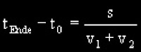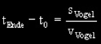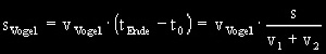 | Zwei Züge haben voneinander den Abstand s. Die Züge fahren aufeinander zu, und zwar Zug 1 mit der Geschwindigkeit v1, Zug 2 mit der Geschwindigkeit v2. Ein Vogel befindet sich beim Ausgangszeitpunkt t0 über Zug 1 und fliegt in dieselbe Richtung wie der Zug. Dabei ist die Geschwindigkeit des Vogels größer als die Einzelgeschwindigkeiten der Züge, es gilt also: vVogel > v1 und vVogel> v2 . Sobald der Vogel sich über dem anderen Zug befindet, wendet er und fliegt in die Gegenrichtung (also in Richtung von Zug 2). So gehe es weiter: Der Vogel wendet jedesmal, wenn er einen Zug erreicht hat. Beim Zeipunkt tEnde sind die Züge kollidiert. Zur Abstraktion sollen der Vogel und die beiden Züge jeweils als Punkte dargestellt werden. Außerdem soll die Trägheit des Vogels vernachlässigt werden. Bei tEnde liegen die beiden Punkte Z1 und Z2 (die für die beiden Züge stehen) übereinander. Der Punkt V entspreche dem Vogel. FRAGE 1: Wie kann man die Strecke ausrechnen, die der Vogel von t0 bis tEnde zurücklegt? FRAGE 2: Wie oft wendet der Vogel? (Problemstellung geposted am 15.10 von Kai Lämmle in der Mathegruppe der Maus) Antwort zu FRAGE 1: Es gelten folgende Gleichungen: (a)